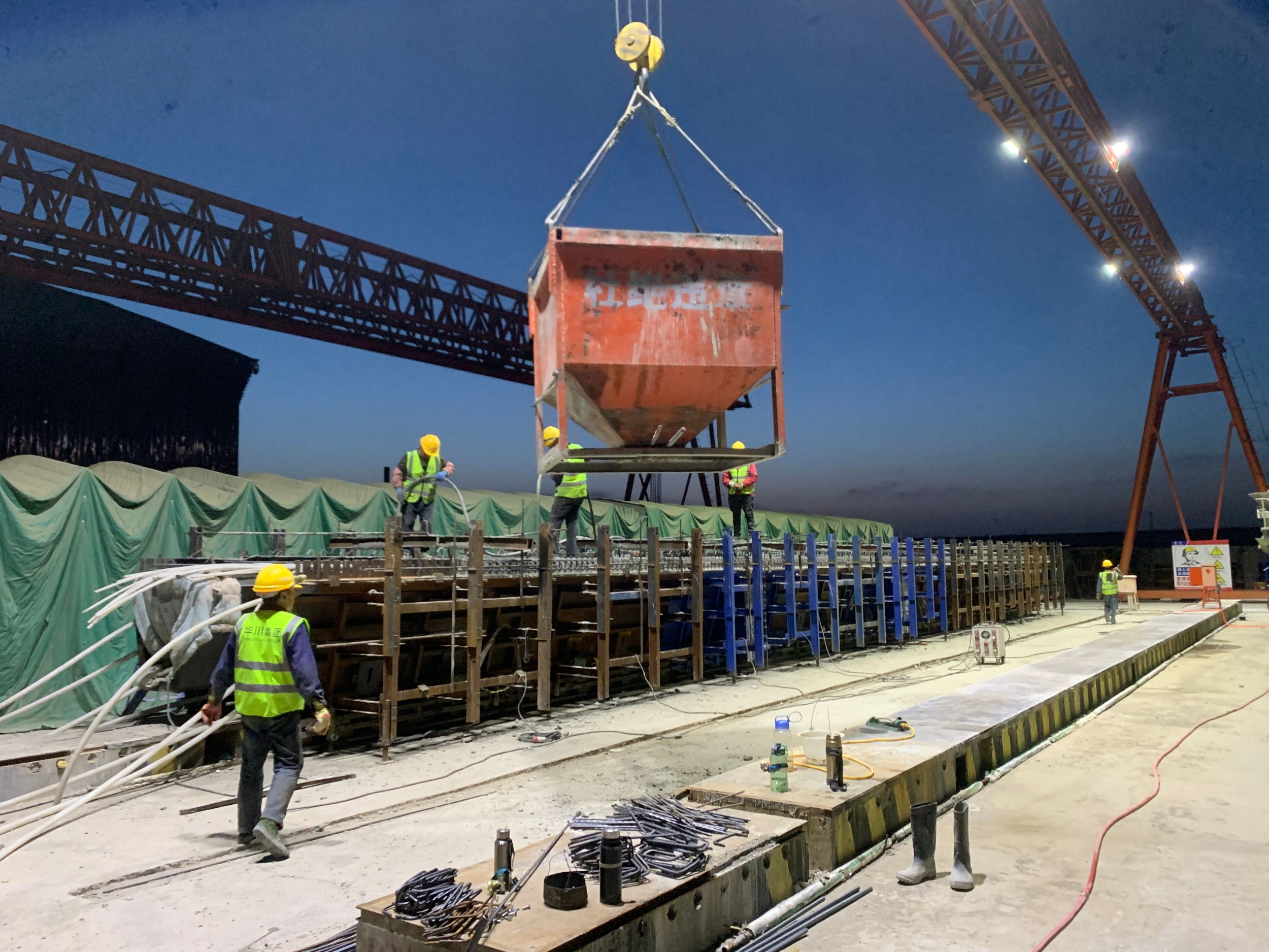 9月18晚,歷經(jīng)2小時(shí)不間斷的澆筑,李興莊大橋最后一片箱梁預(yù)制順利完成,標(biāo)志著預(yù)制梁場(chǎng)取得進(jìn)一步階段性勝利,為后續(xù)橋梁施工奠定了堅(jiān)實(shí)的基礎(chǔ)。