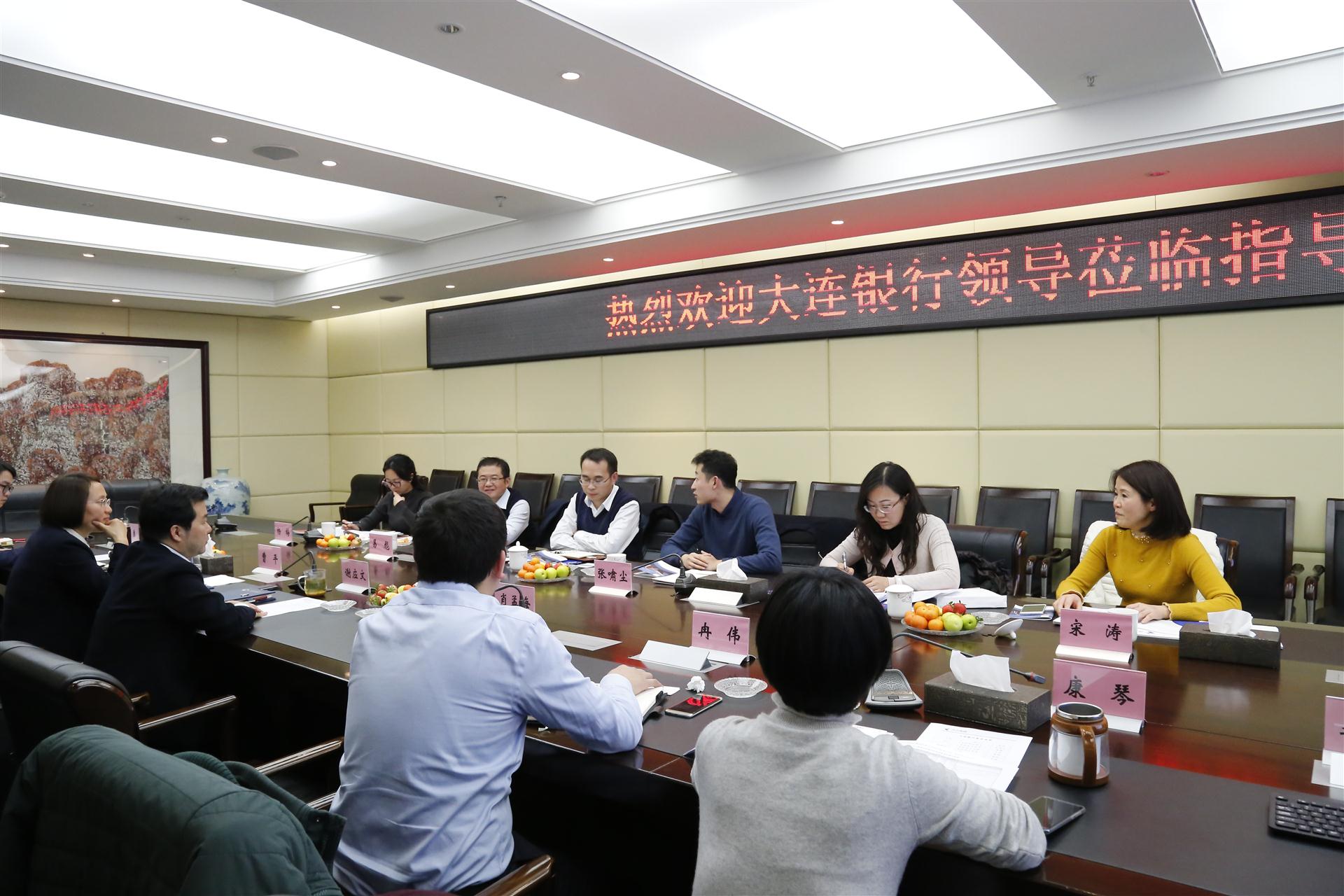 1月17日下午,大連銀行總行審批部主任張嘯塵、審批專員薛霜一行,在大連銀行成都分行審批部總經理王東、九眼橋支行行長易彪等陪同下蒞臨集團公司,與公司黨委書記、董事長、總裁謝應文進行座談。