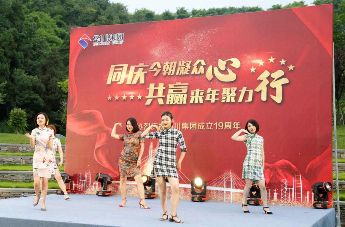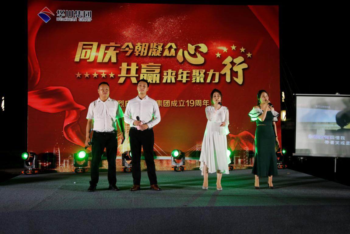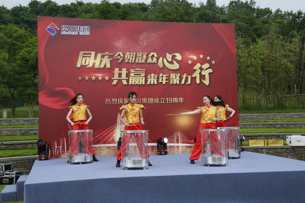 晚上,農(nóng)業(yè)總部基地?zé)艋痨陟冢瘓F(tuán)19周年慶典晚會在這里舉行。作為十九周年與二十周年的連接節(jié)點(diǎn),今晚過后將迎來集團(tuán)成立二十周年華誕,黨委副書記發(fā)布《關(guān)于慶祝集團(tuán)成立二十周年氛圍營造工作的通知》,副總裁熊文發(fā)布《休養(yǎng)度假專項(xiàng)福利方案》。發(fā)布會后,一曲《盛世華誕》鼓舞劃破夜空,激烈昂揚(yáng)鼓聲將拉開了慶典的序幕?!督裉焓悄愕纳铡?,通過詞語改編,為集團(tuán)送上了美好的生日祝福;群舞《別樣風(fēng)華》,通過集團(tuán)女干部與文工團(tuán)溫婉柔美,猶如一幅曼妙的畫卷;朗誦加合唱的節(jié)目《華川力量》,字字鏗鏘,展示出華川人血脈里流淌的豪邁情懷和磅礴的力量。伴隨著晚風(fēng)習(xí)習(xí),周年慶典進(jìn)入尾聲,在《華川之歌》的歌聲中,大家自發(fā)走上舞臺,齊聲合唱,伴隨著熟悉的曲調(diào),大家連連歡呼,為本次慶典劃上了圓滿的句號。