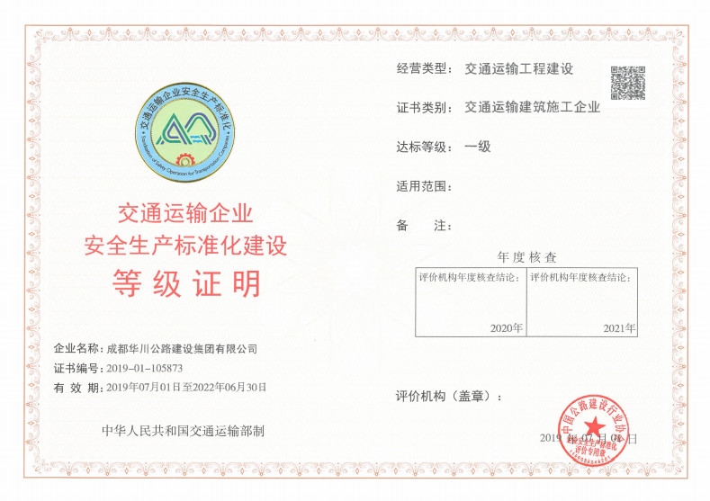 此次證書(shū)的獲得將對(duì)提升集團(tuán)公司在公路、橋梁等建筑施工領(lǐng)域的核心競(jìng)爭(zhēng)力,為集團(tuán)公司實(shí)現(xiàn)安全管理標(biāo)準(zhǔn)化、作業(yè)現(xiàn)場(chǎng)標(biāo)準(zhǔn)化和操作過(guò)程標(biāo)準(zhǔn)化奠定了良好基礎(chǔ)。