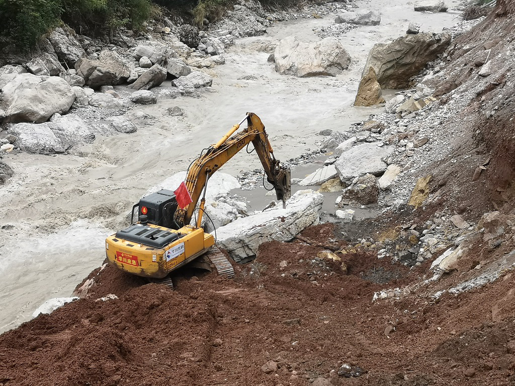 截止8月26日,崇州雞冠山受災(zāi)路段4號點位(K22+260)及5號點位(K22+805)已全面搶通,達(dá)到機械設(shè)備、車輛可以通過條件。同時,為增強兩處通行能力,分別在4號點位采取鉛絲籠加固便道及邊坡,5號點位對路基進(jìn)行填筑加高。26日下午,11號點位(K25+390)已組織機械設(shè)備進(jìn)場進(jìn)行便道路基修筑。