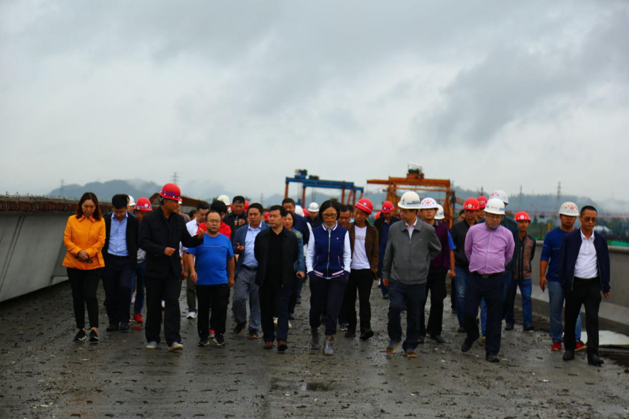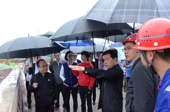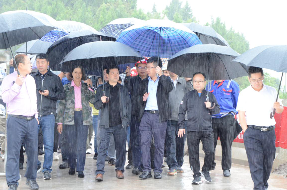9月17日,集團(tuán)黨委書記、董事長(zhǎng)、總裁謝應(yīng)文、常務(wù)副總裁駱曉紅等領(lǐng)導(dǎo)率集團(tuán)各職能部門負(fù)責(zé)人,在營(yíng)達(dá)項(xiàng)目向年底通車目標(biāo)發(fā)起總攻、決戰(zhàn)決勝的關(guān)鍵時(shí)刻,冒雨深入營(yíng)達(dá)高速項(xiàng)目施工一線現(xiàn)場(chǎng)督導(dǎo)慰問。營(yíng)達(dá)公司總經(jīng)理謝應(yīng)武及參建單位負(fù)責(zé)人等陪同。