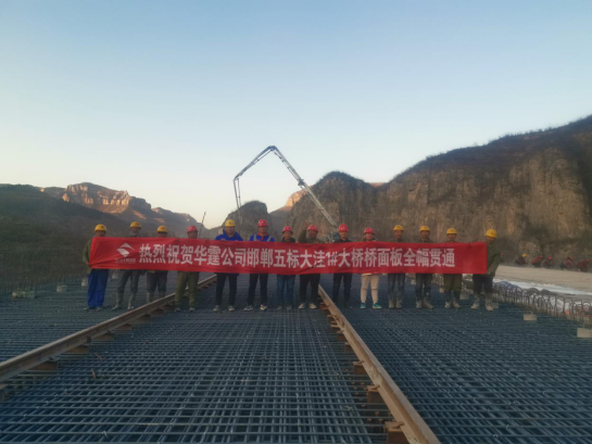隨著年度通車目標的日益臨近,華霆公司邯鄲五標的生產進度也快馬加鞭地有序推進。12月4日,華霆公司邯鄲五標又一次迎來了關鍵性工程節(jié)點,大洼1#大橋橋面板順利實現全幅貫通。