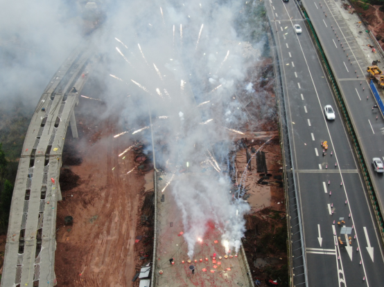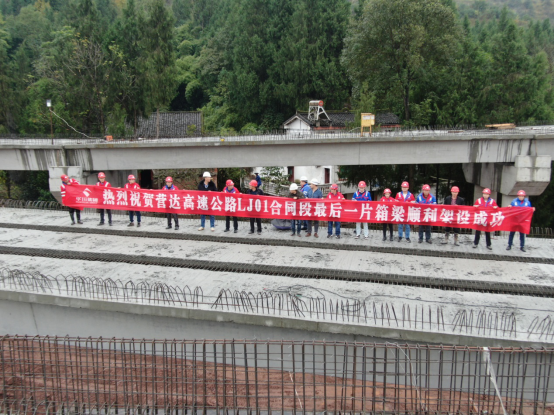 11月24日10時(shí)18分,隨著新店樞紐互通G匝道橋最后一片小箱梁被吊裝設(shè)備穩(wěn)穩(wěn)安放在最后一跨墩柱上,現(xiàn)場(chǎng)慶祝的煙花頓時(shí)直沖云霄,鞭炮聲、歡呼聲、吶喊聲響成一片。對(duì)于參與新店樞紐互通施工的每一個(gè)參建者來(lái)說(shuō),這是一個(gè)激動(dòng)人心的時(shí)刻。新店樞紐互通最后一片箱梁順利架設(shè)成功,標(biāo)志著整個(gè)新店樞紐互通主體結(jié)構(gòu)施工全面完工,提前6天完成了營(yíng)達(dá)公司下達(dá)的目標(biāo)任務(wù)。