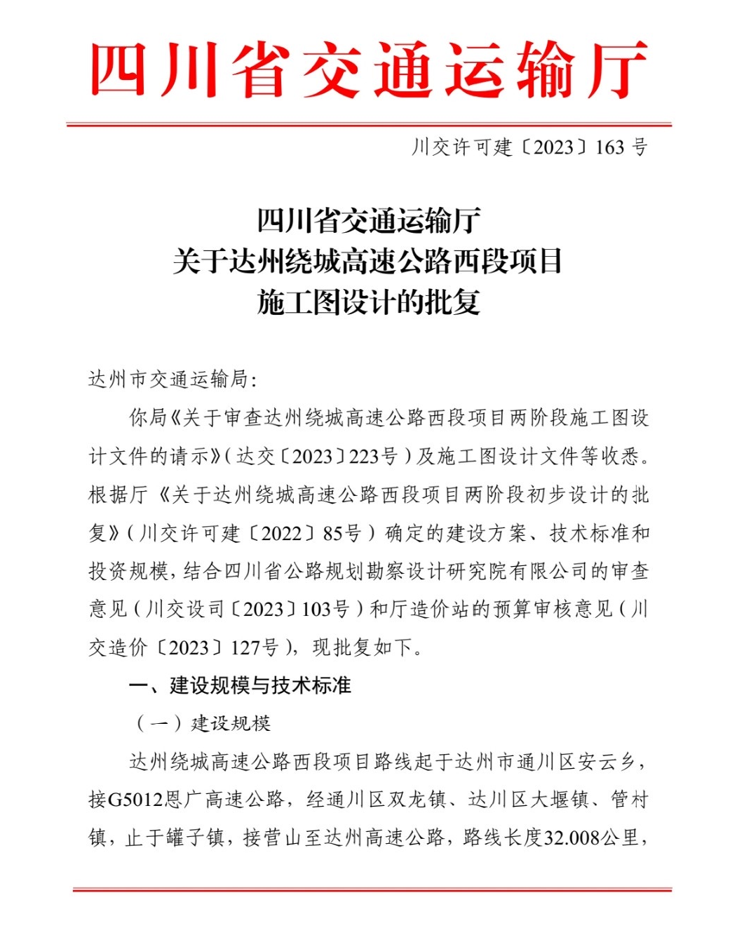 達(dá)州繞城高速公路西段項(xiàng)目施工圖設(shè)計(jì)獲批復(fù)